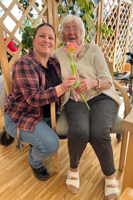 Anlässlich des Internationalen Frauentages am 8. März 2024 überraschte das SeneCura Sozialzentrum Laurentius-Park ihre Mitarbeiterinnen und Bewohnerinnen mit einem blumigen Gruß. Mit dieser Geste der Wertschätzung würdigte das Haus den unermüdlichen Einsatz und die wertvollen Beiträge der Frauen in allen Bereichen des Unternehmens. Bereits am Morgen wurden die Mitarbeiterinnen und Bewohnerinnen mit einem Lächeln im Gesicht begrüßt. Denn jede von ihnen erhielt eine farbenfrohe Blume, die den Frühling in die SeneCura Bludenz brachte. Die Freude über die kleine Aufmerksamkeit war groß und sorgte für strahlende Gesichter. Das SeneCura Sozialzentrum Laurentius-Park ist stolz auf ihre starke Frauenquote. Ob in der Pflege, im Management, in der Hauswirtschaft oder in der Küche – Frauen tragen in allen Bereichen des Unternehmens zum Erfolg bei. Mit ihrem Engagement, ihrer Expertise und ihrer Herzlichkeit gestalten sie den Alltag der Bewohnerinnen und Bewohner positiv und sorgen für eine Atmosphäre des Wohlbefindens.