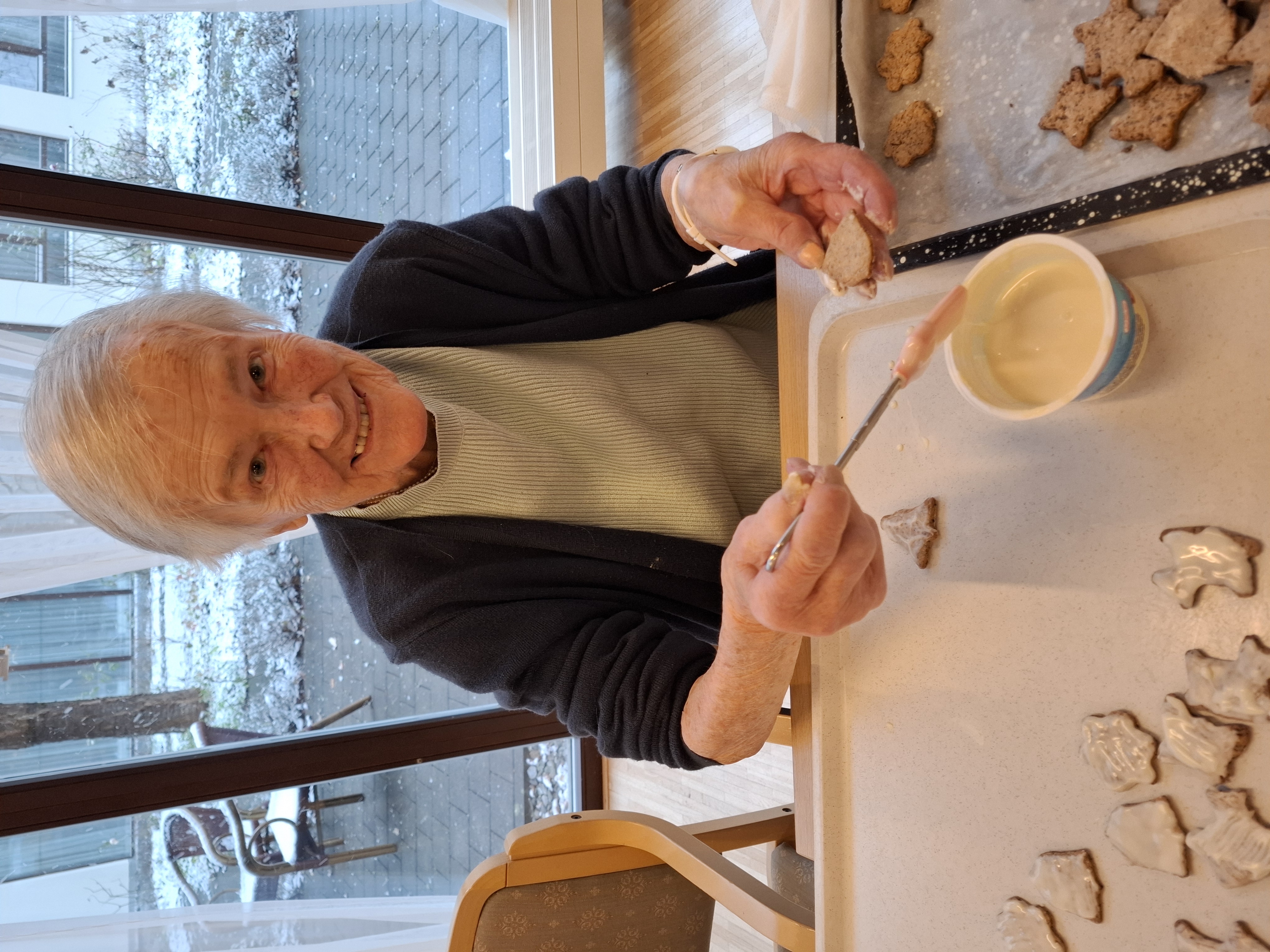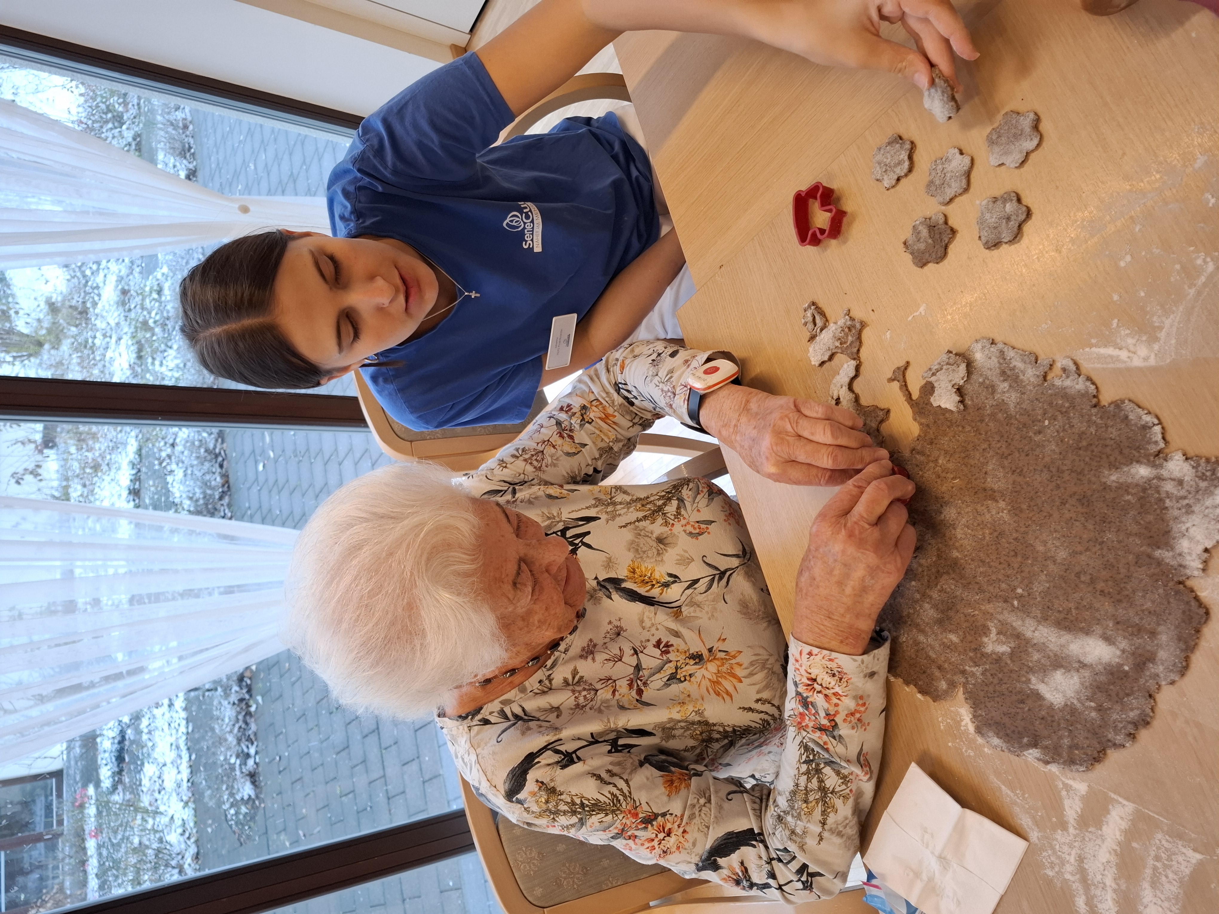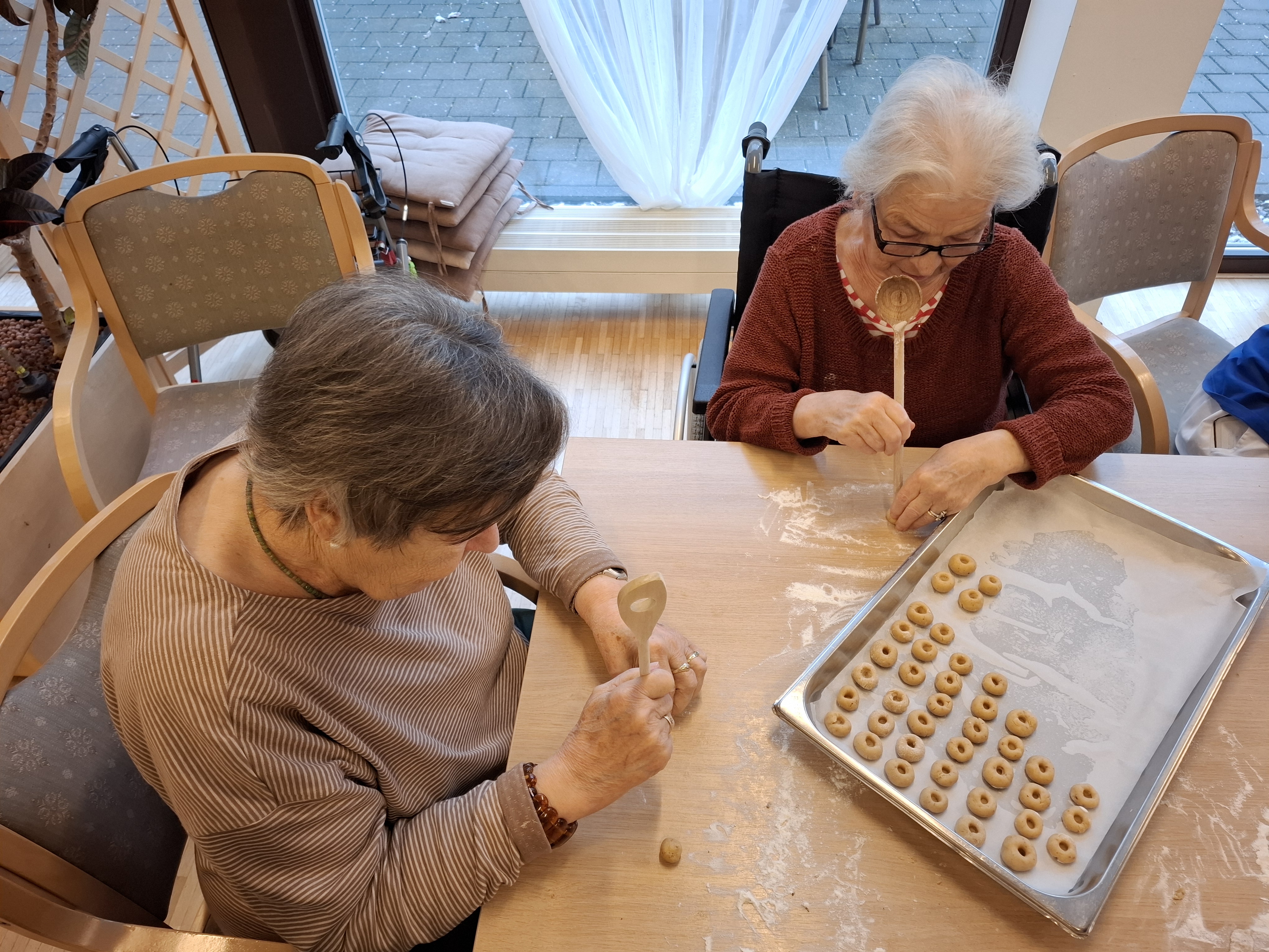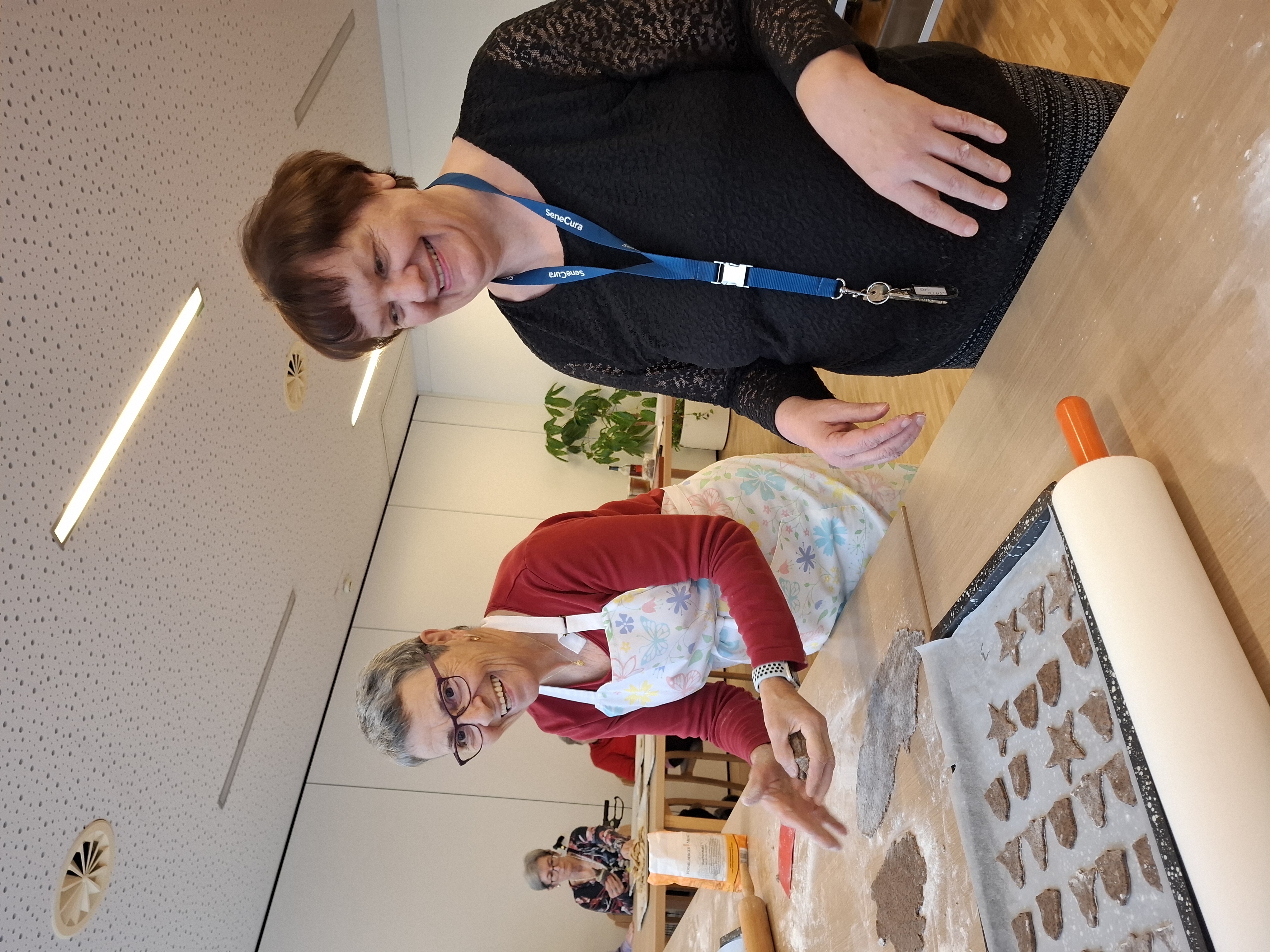 Elfi Brändle und ihr engagiertes Wichtel-Team begleiteten die Bewohner:innen beim Backen und sorgten für eine fröhliche, herzliche Atmosphäre. Musikalische Klänge und eine winterliche Stimmung machten den Nachmittag besonders gemütlich – und die Arbeit ging wie von selbst.