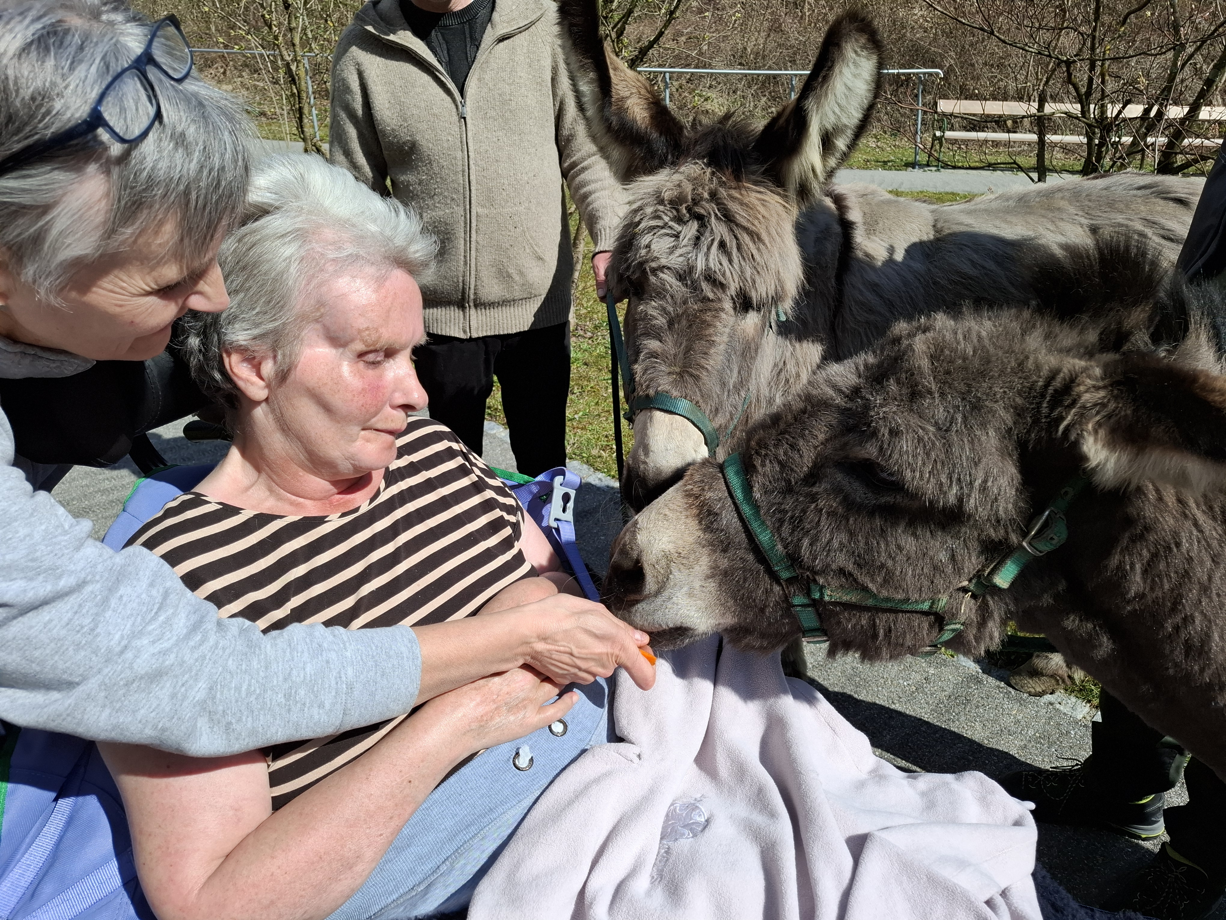 Große Freude über den Besuch von Eseln im SeneCura Sozialzentrum Laurentiuspark in Bludenz